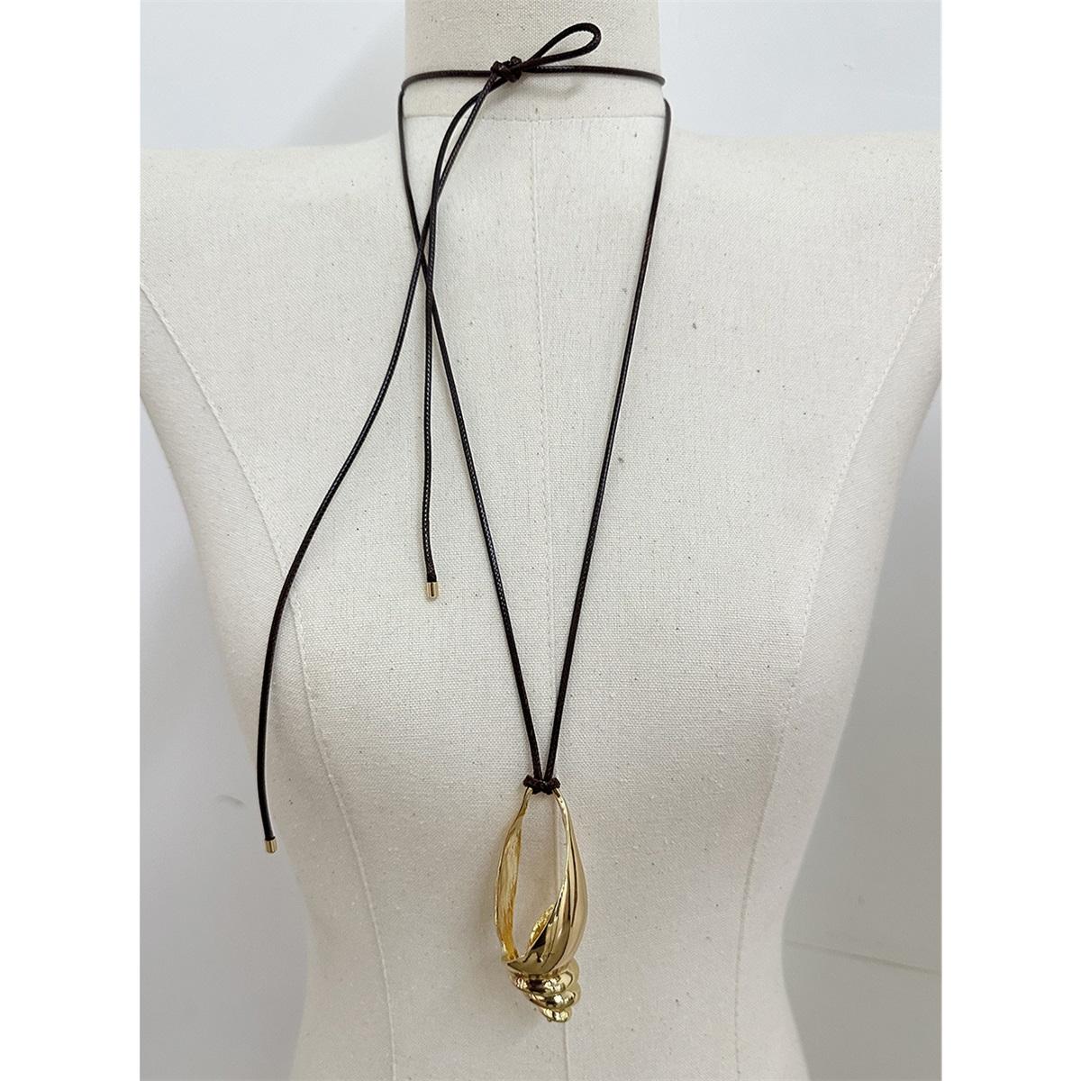 Tooxika Легкая Роскошь Металлический Подвеска в Форме Раковины Кожистый Шнурок Ожерелье в Гонконгском Стиле Шикарное Длинное Ожерелье Аксессуары золотой