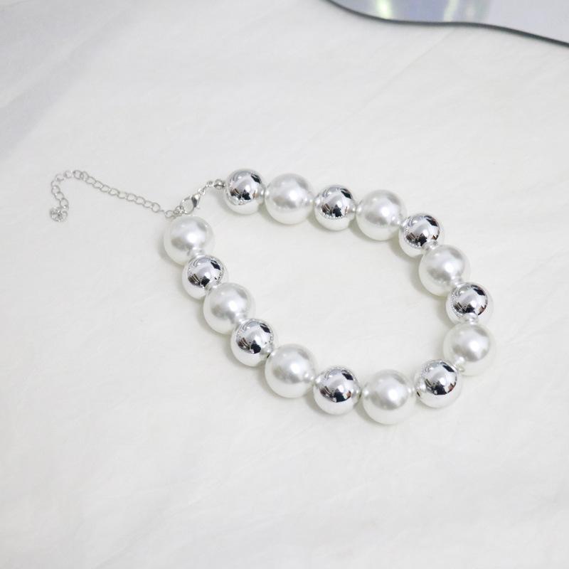 Tooxika Персонализированное Преувеличенное Металлическое Колье с Большой Жемчужиной, Простое Панк-Ретро Колье-Цепочка на Ключицу в Холодном Ветре