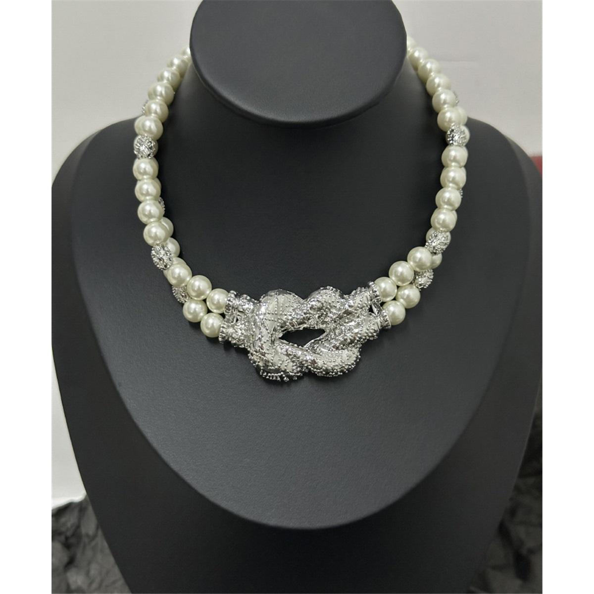 Tooxika Роскошное ожерелье с металлическим узлом и жемчужной вставкой, двухрядное, в стиле Юань, ожерелье-замок на ключицу для платья серебряный