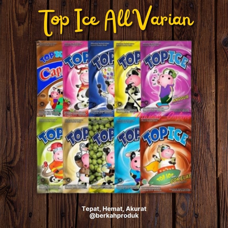 Top Ice adalah minuman bubuk rasa yang populer di kalangan anak-anak dan remaja. Dibuat dengan susu sebagai bahan utama, Top Ice menawarkan kesegaran dan kelezatan dalam berbagai rasa. Dikemas dalam sachet praktis, Top Ice mudah disajikan dengan air panas atau dingin.