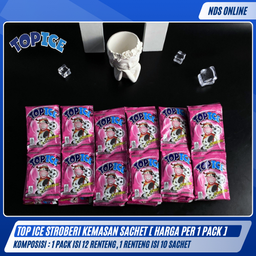 Top Ice Stroberi Sachet – Isi 1 Pack (12 Renteng x 10 Sachet) | Minuman Rasa Stroberi Segar & Creamy