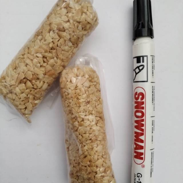 Topping kacang hancur kemasan repack. Ukuran bisa dilihat perbandingan dengan spidol.