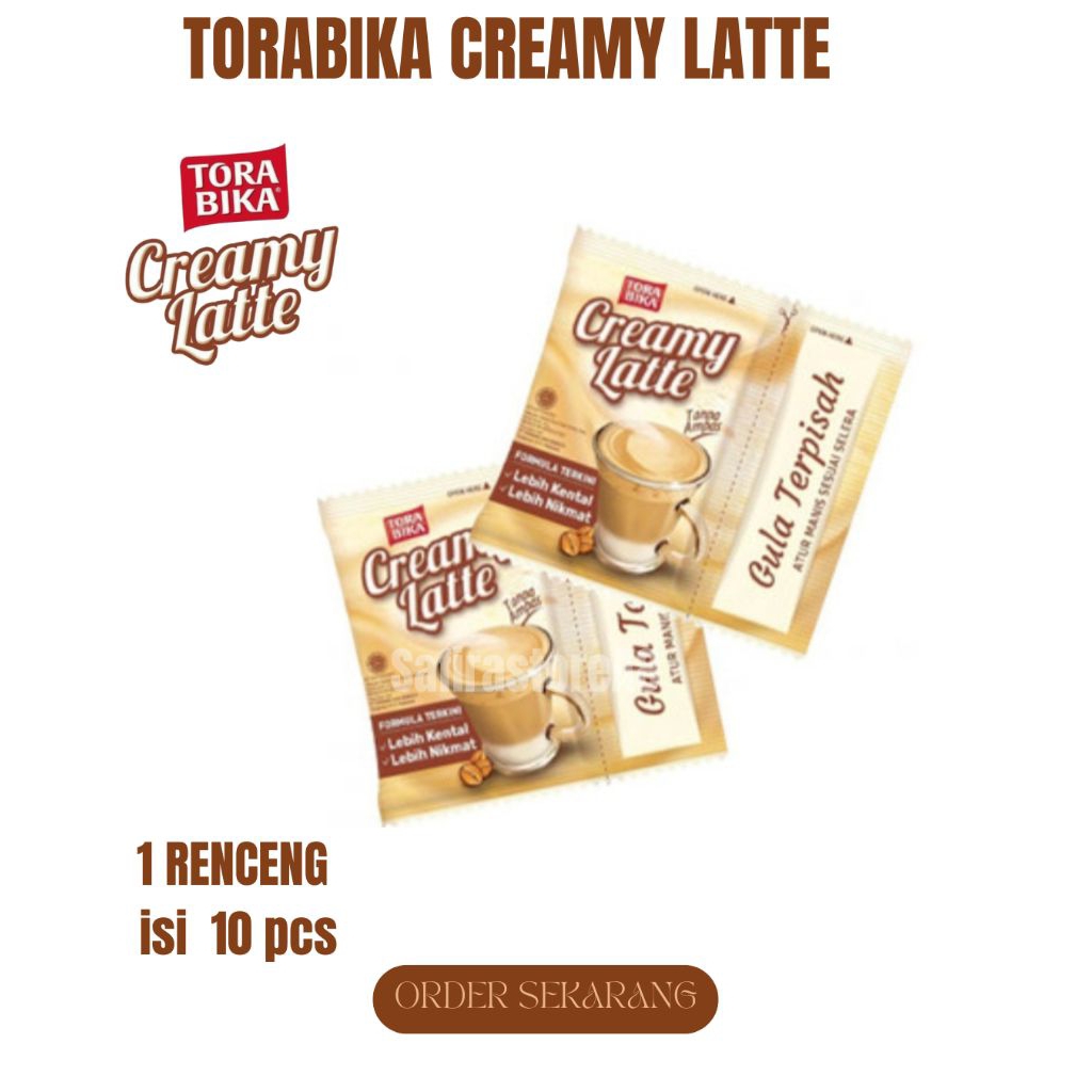 Torabika Creamy Latte adalah kopi instan dengan rasa creamy latte dan gula terpisah. Gula terpisah ini memungkinkan pengguna mengatur tingkat kemanisan sesuai selera. Kopi ini dibuat dari biji kopi pilihan yang diproses secara higienis dan modern.