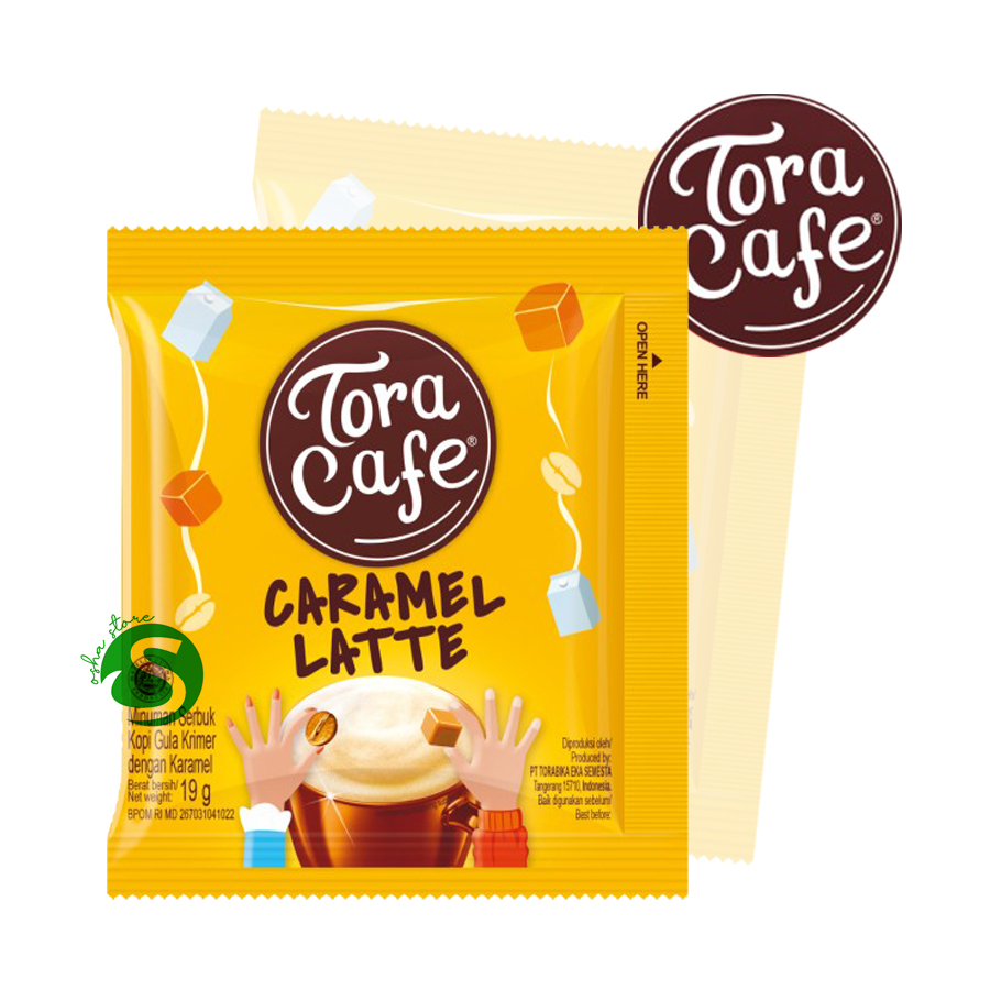 Toracafe Caramel Latte renceng, perpaduan antara campuran kopi instan yang wangi dengan susu manis dan lezat yang memberikan keistimewaan untuk menikmati rasa kopi. Cita rasa susu kopi Latte yang super creamy