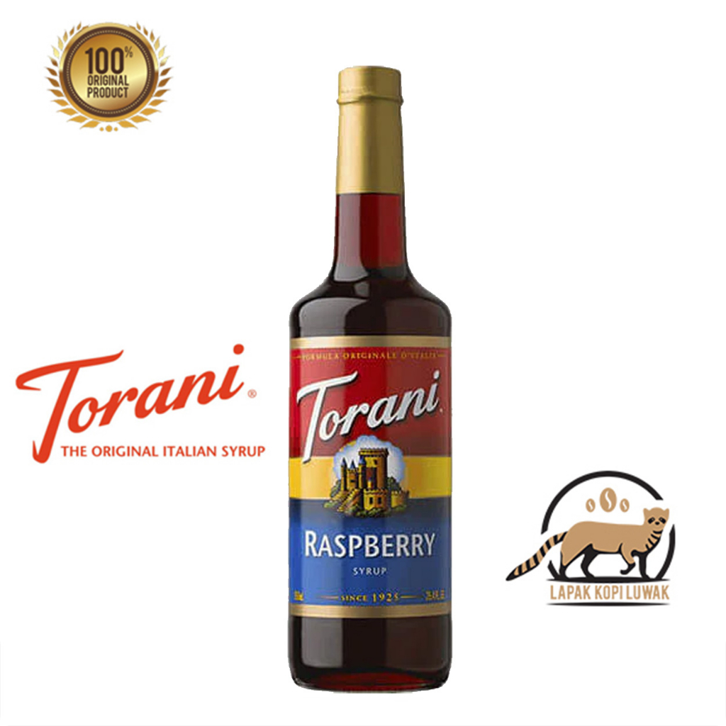 Torani syrup rasa raspberry dengan ukuran 750 ml.