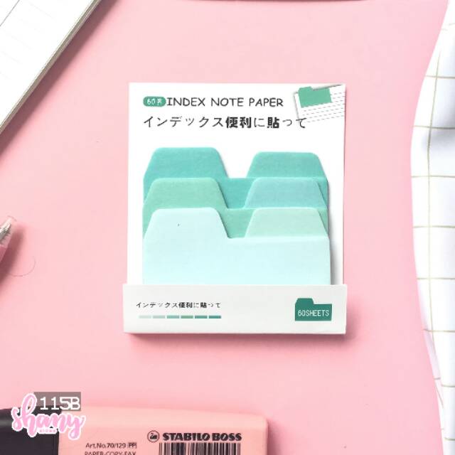 sticky notes berbentuk folder dengan pilihan warna yang bervariasi dan per satu warna, shade-nya pun udah banyak banget. rasanya kayak beli banyak sticky notes padahal cuma punya satu hemat banget!