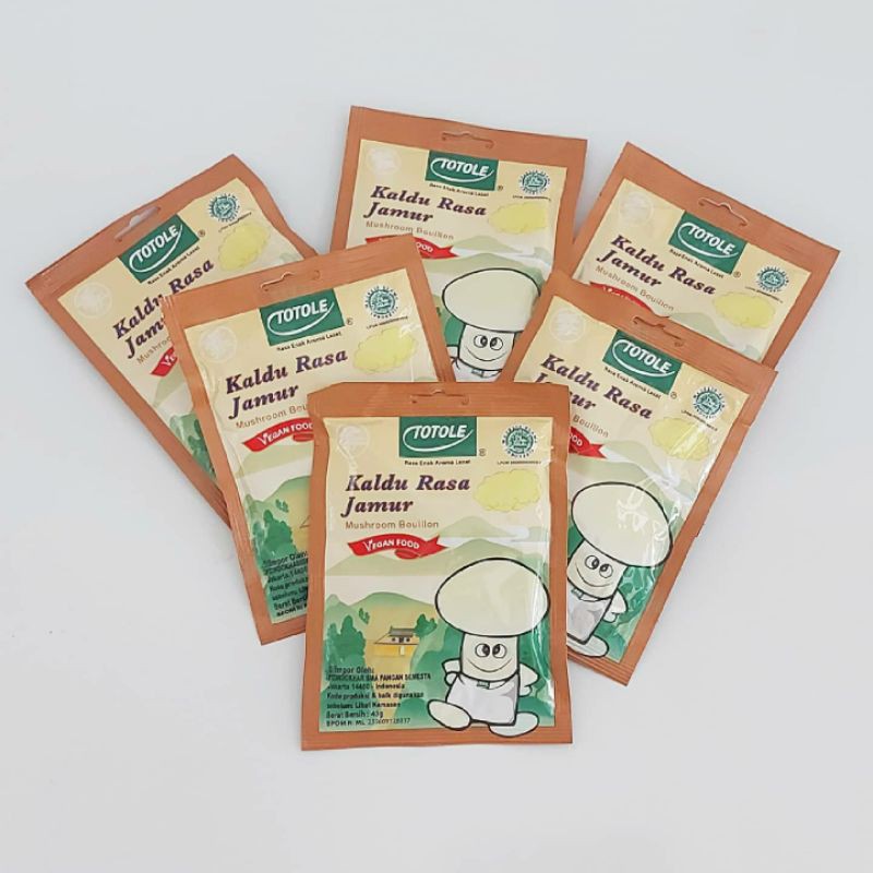 TOTOLE Kaldu Rasa Jamur Kaldu ini dapat digunakan untuk memasak, memberi rasa pada makanan dan sup. Kegunaan TOTOLE : Mengantikan MSG untuk mendapatkan rasa yg lebih lezat Memberi rasa untuk semua jenis makanan dan masakan Menambah aroma wangi pada masakan berkuah Sangat sesuai untuk pelaku diet vegetarian. Perbandingan : Kalau pakai vetsin 1 sdm (sendok mkn), tapi dengan kaldu bubuk jamur TOTOLE cukup 1/2 sdm saja, juga dapat diberikan kepada buah hati bunda karena jauh lebih sehat, karena TOTOLE benar-benar terbuat dari bahan alami (jamur) Tidak mengandung daging, cocok juga untuk vegetarian. TOTOLE ini tidak mengandung kolesterol karena bahan dasarnya jamur jadi jelas tidak mengandung kolesterol