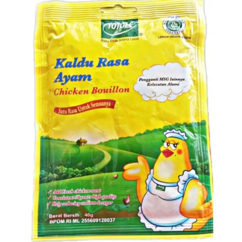 Totole Kaldu Rasa Ayam Penyedap Rasa , penyedap rasa yang dibuat dari daging ayam segar pilihan membuat selera makan yang mengkonsumsinya meningkat. Manfaat lainnya bisa meningkatkan imun daya tahan tubuh, kaya akan protein, menghangatkan tubuh, melancarkan peredaran darah, menguatkan tulang karena kaya akan kalsium, dan dapat mengatasi radang tenggorokan.