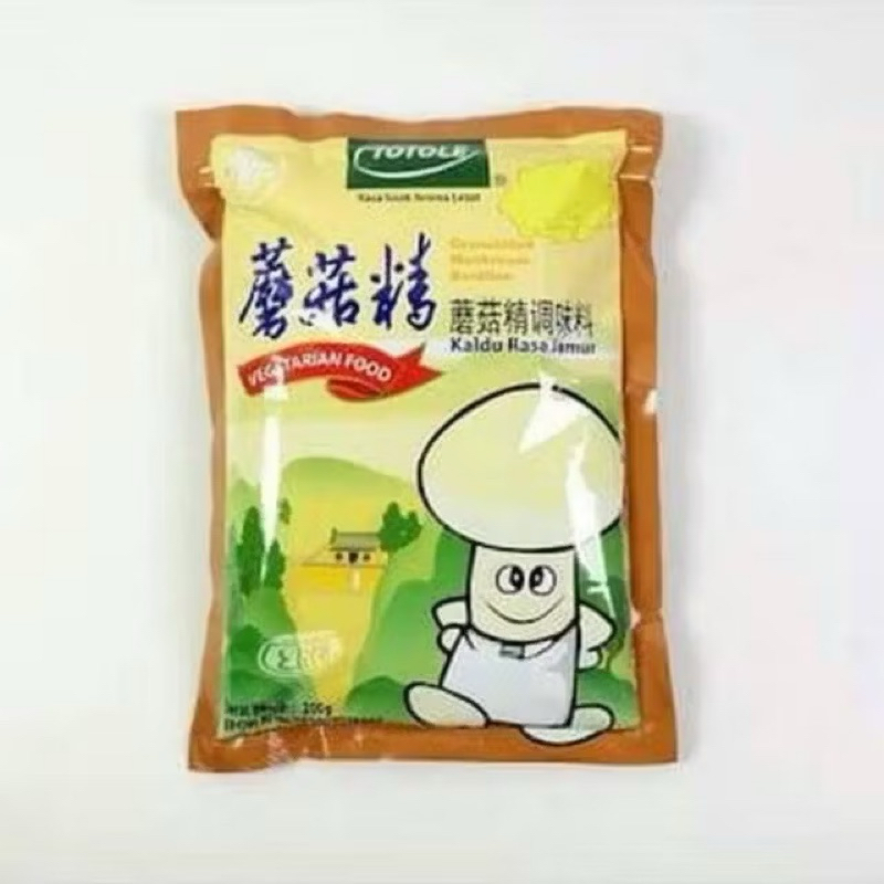 Pengganti kaldu hewani. Berbahan dasar jamur tanpa unsur hewani. Cocok buat vegan (Vegetarian). Non Kolesterol lebih aman drpd pakai kaldu yg rasa2 hewani Kegunaan totole : 1.Mengantikan MSG untuk mendapatkan rasa yg lebih lezat 2.Memberi rasa untuk semua jenis makanan dan masakan 3.Menambah aroma wangi pada masakan berkuah. -Komposisi: garam, jamur kering, beras, gula, hidrolisa protein sayur (mengandung kacang kedelai), tepung pemguat rasa (terbuat dari beras dan tepung jagung)