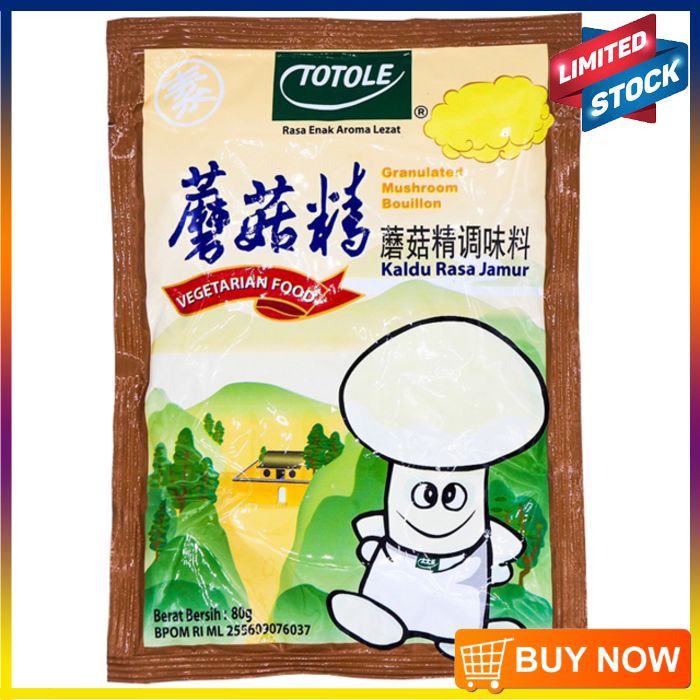Kaldu Rasa Jamur Totole 80 gr merupakan kaldu rasa jamur yang terbuat dari - pilihan. Dapat digunakan untuk memasak, memberi rasa pada makanan dan sup Anda, membuat masakan Anda lebih baik dari yang pernah Anda rasakan. Diproses dan dikemas secara higienis, Non Kolestrol sehingga aman untuk dikonsumsi