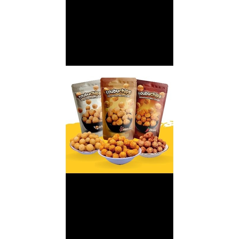 Toubuchips merupakan Keripik Tahu Bulat Premium. Kripik ini terbuat dari kedelai asli dengan tambahan rempah-rempah alami seperti bawang merah,bawang putih serta bumbu-bumbu dapur alami yang pastinya tanpa bahan pengawet.
