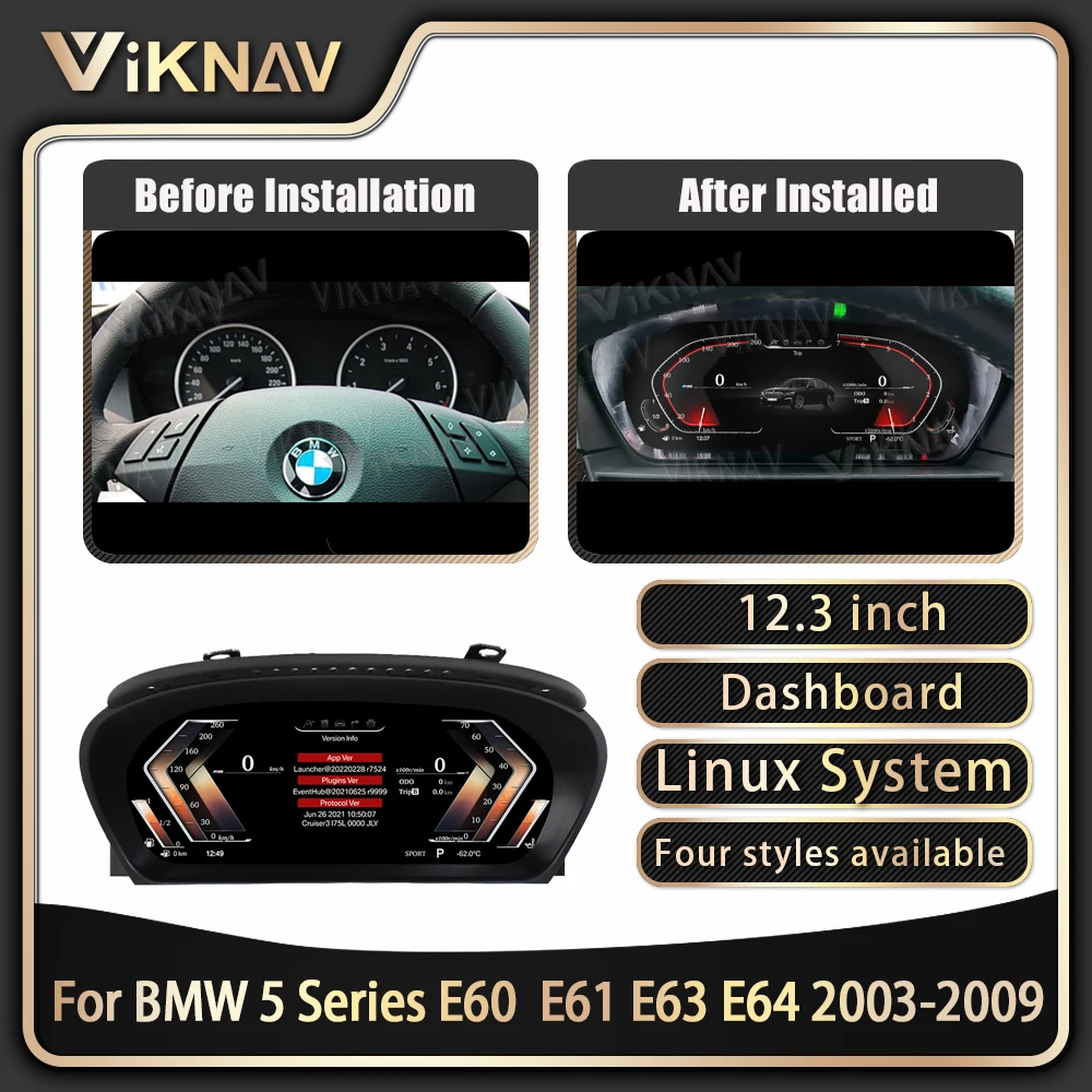 12,3 дюймовый автомобильный цифровой кластер для BMW 5 серии E60 E61 E63 E64 2003-2009 LCD Speedmeters приборной панели