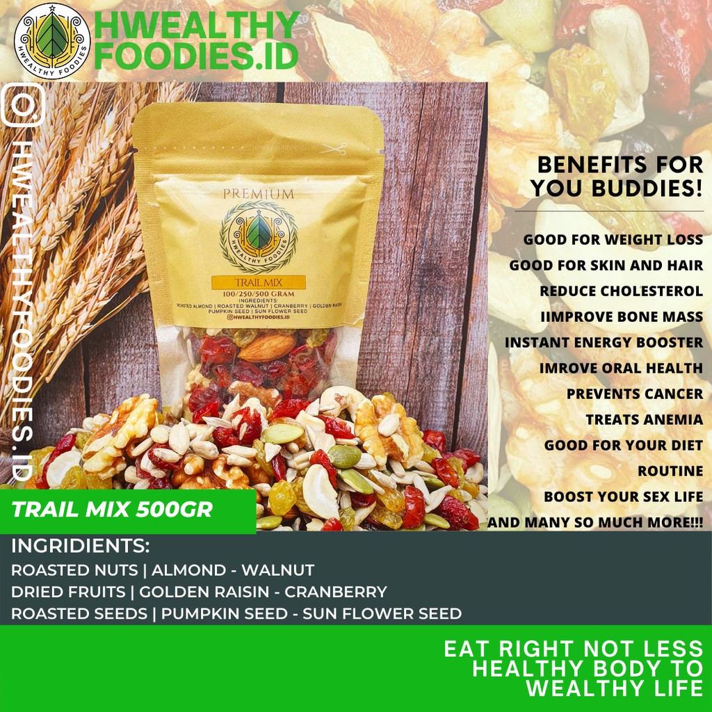 HWEALTHY PREMIUM TRAIL MIX sangat ideal untuk Buddies yang sedang berdiet, untuk ibu hamil & menyusui dan juga baik untuk Buddies yang gemar berolahraga.