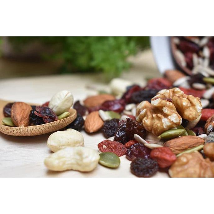 Almond, Cashew, Walnut, Cranberry, Raisin Pumpkin Seeds, Sunflower dan Goji Berry.