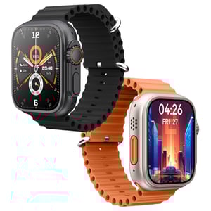Smartwatch with call, message alerts, blood oxygen, heart rate, blood pressure, sleep monitor, calories, workout modes, sedentary and hydrate reminders, music, camera, calculator, stopwatch, alarm, custom watch face, voice assistant, map, wireless charging, and arm light screen.