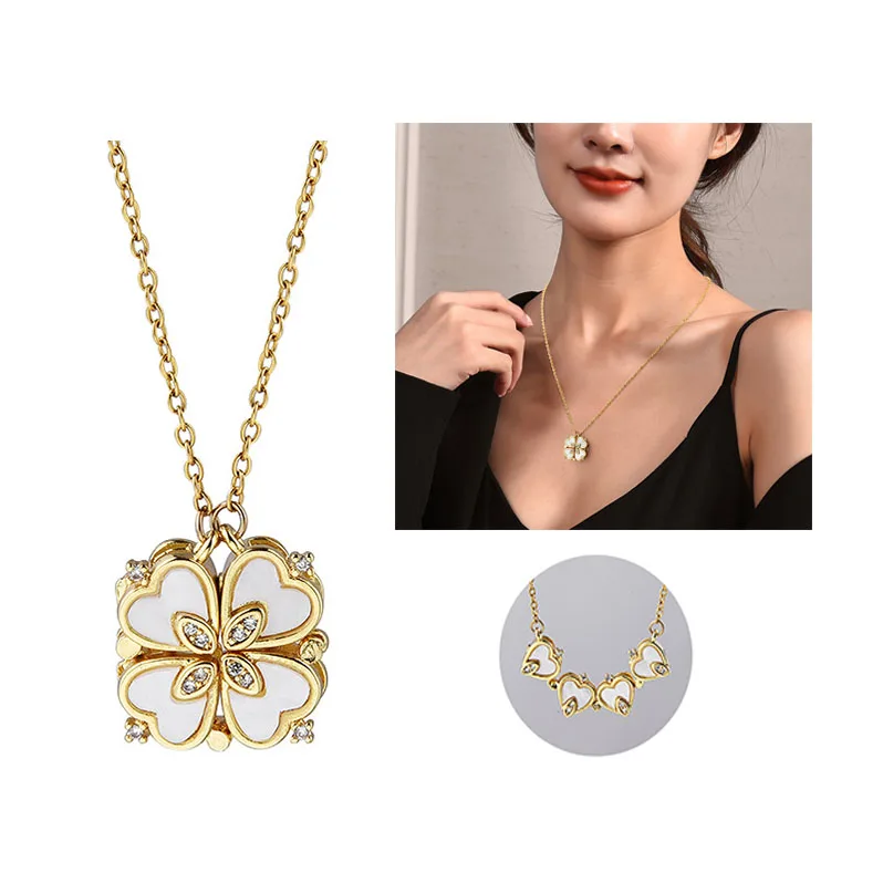 Transformable Necklace Crystal Necklace Stainless Steel Magnetic Four-Leaf Clover necklace