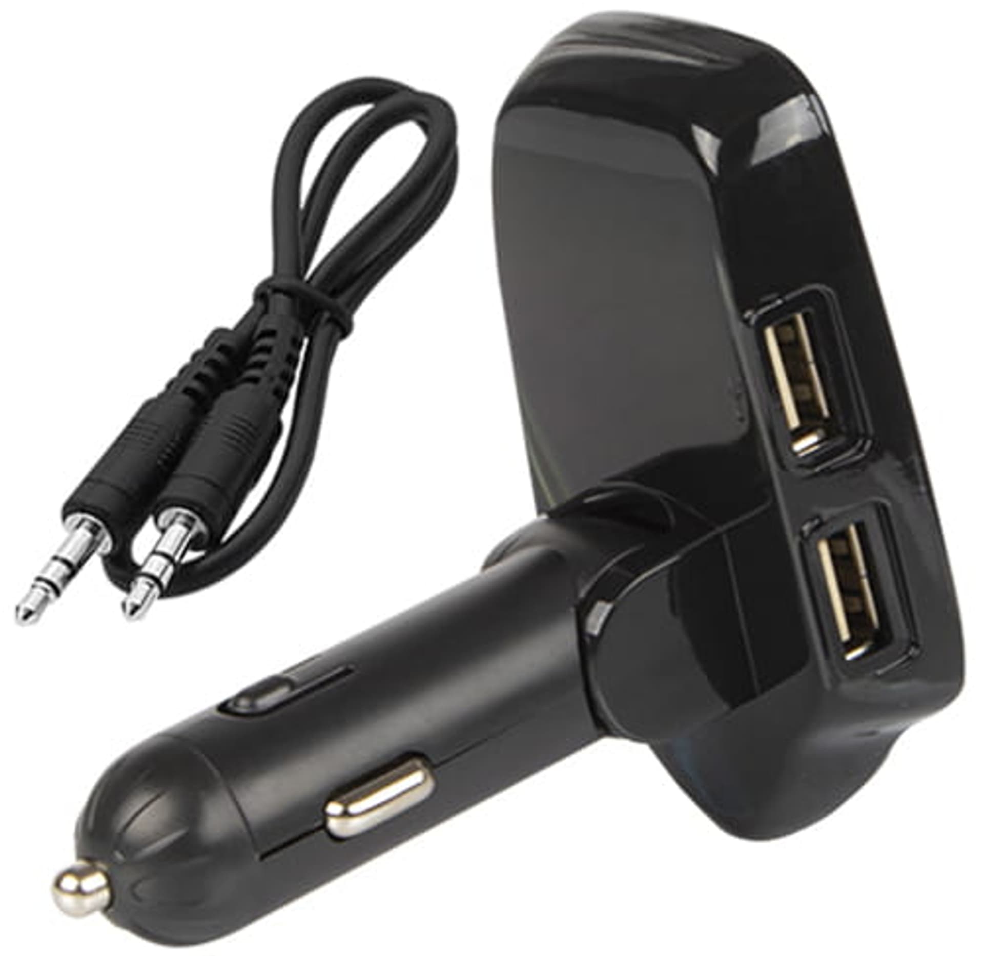 Transmiter FM Bluetooth T-02 to produkt który zwiększa funkcjonalność nawet najprostszego radia w samochodzie. Dane z transmitera są przesyłane bezpośrednio do samochodowego systemu audio. Dzięki wbudowanej funkcji Bluetooth istnieje możliwość przesyłania muzyki bezpośrednio z telefonu. Dodatkowo transmiter został wyposażony w dwa wejścia USB. Najważniejsze cechy transmitera FM z bluetooth:- Wbudowany mikrofon pozwala na prowadzenie rozmów głośnomówiących- Redukcja szumów poprzez CVC- Technologia Full Duplex- Wsparcie A2DP umożliwiająca przesyłanie i odtwarzanie muzyki poprzez Bluetooth w wysokiej jakości- Automatyczne parowanie po pierwszym ustawieniu- Wbudowane przyciski do obsługi urządzenia- Czytelny wyświetlacz LCD - Wersja Bluetooth: V4.2 + EDR- Zakres częstotliwości: 20Hz-20KHz- Napięcie: 5V +/- 0,5- Prąd pracy: 45 mAh (max)- Prąd czuwania: 25 mAh (max)- Częstotliwość: 2.402-2.480 GHz- Zasięg pracy: 5 m- RF: 4dBm- Częstotliwość FM: 87,5 - 108 MHz