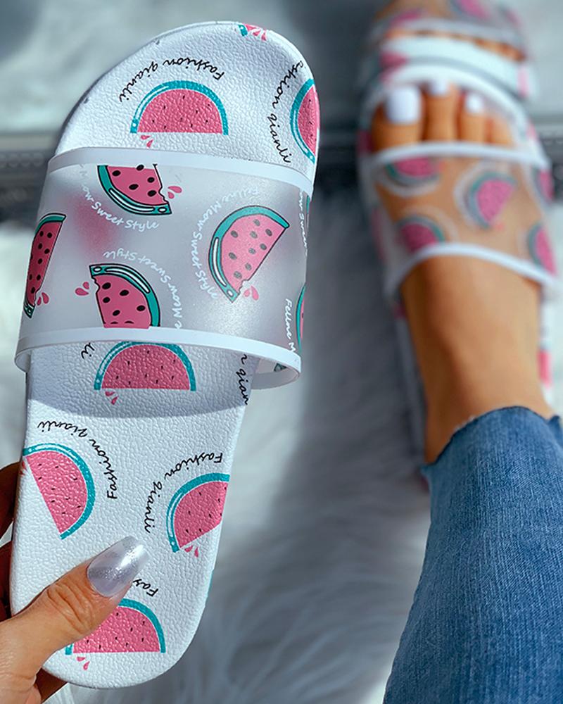 Transparent Fruits Pattern Open Toe Flat Sandals, White
