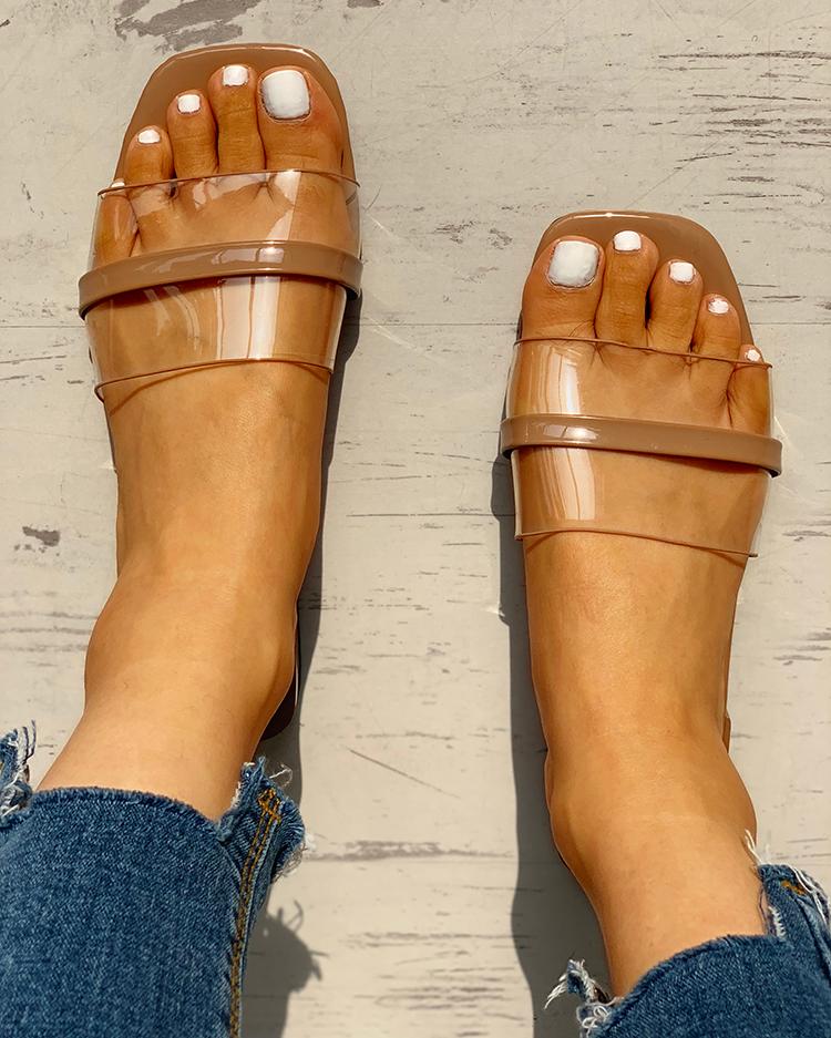 Transparent Single Strap Open Toe Sandals, Coffee