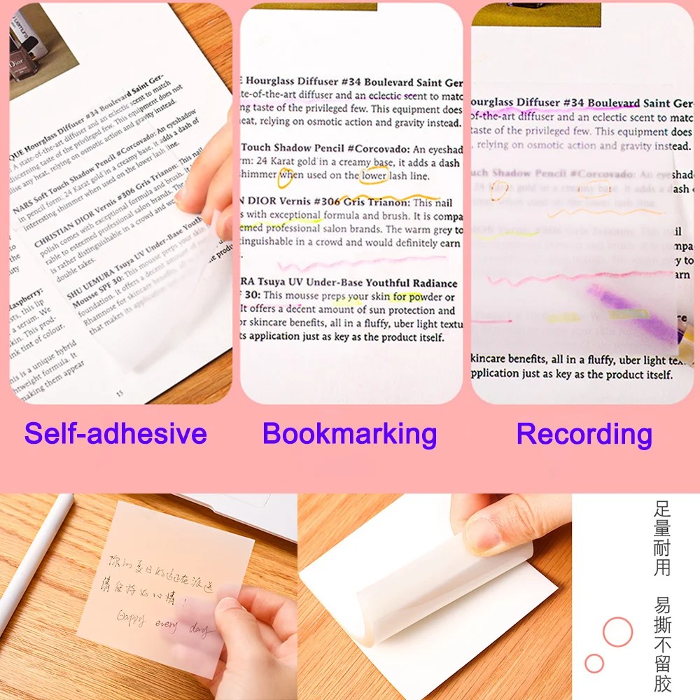 Transparent sticky notes Kawaii Memo Pad Utility: Office Stationery School Student Prize Accessory back to school small Business supplies bookmarks index planner products items