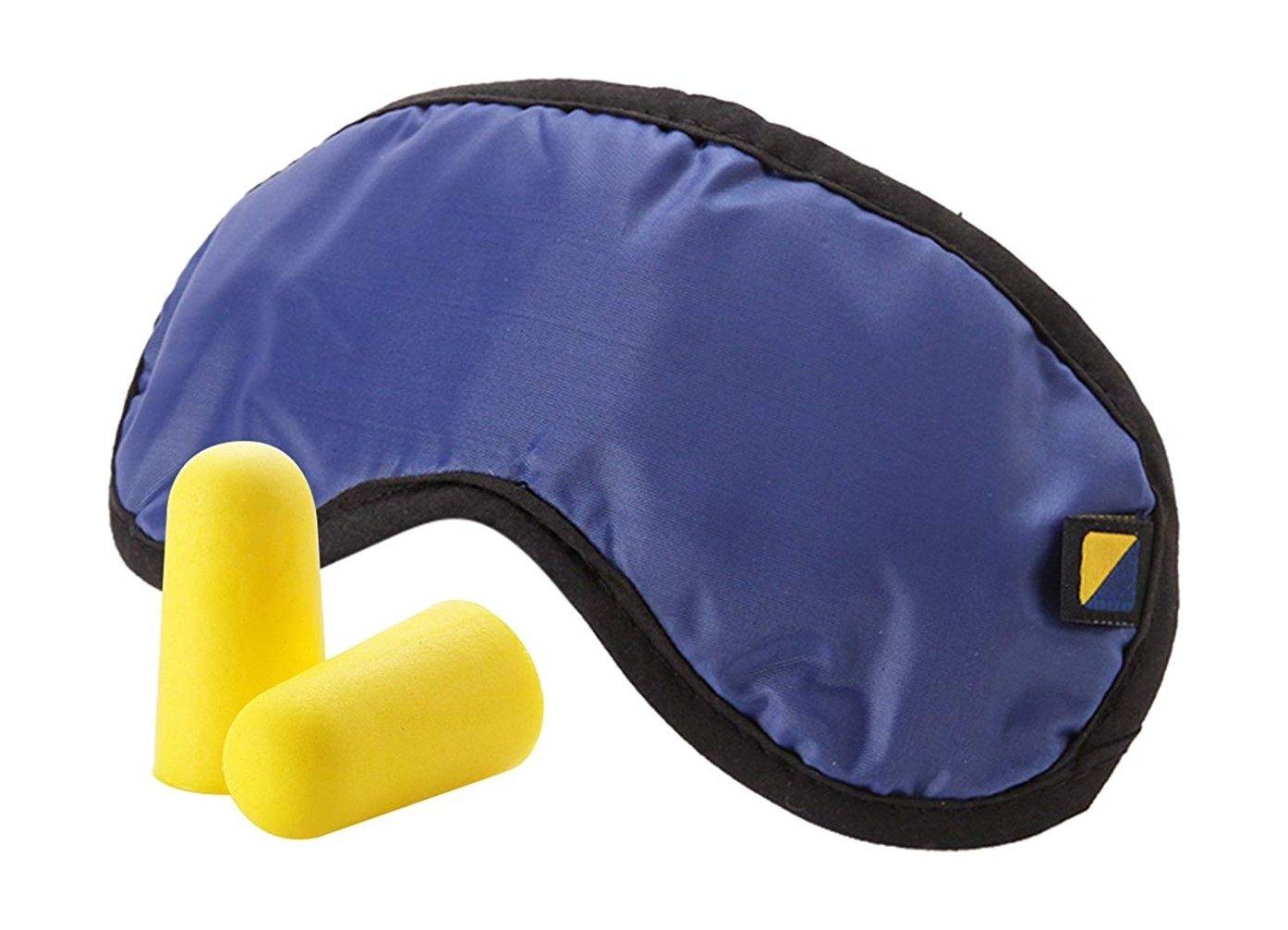 Travel blue earplug and eye mask comfort set