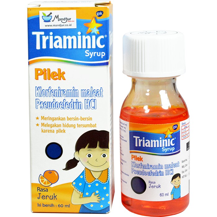 Triaminic Syrup Pilek merupakan obat yang diformulasikan khusus untuk membantu meredakan gejala pilek pada anak-anak seperti bersin-bersin, hidung tersumbat dan terasa nyeri pada seluruh badan.Triaminic Syrup Pilek bekerja sebagai antihistamin dan efektif untuk meringankan gejala hidung tersumbat (dekongestan).