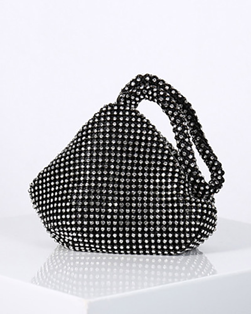 Triangle Design Full Rhinestones Evening Bag, Black