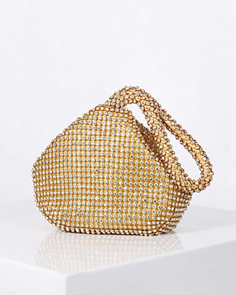 Triangle Design Full Rhinestones Evening Bag, Gold