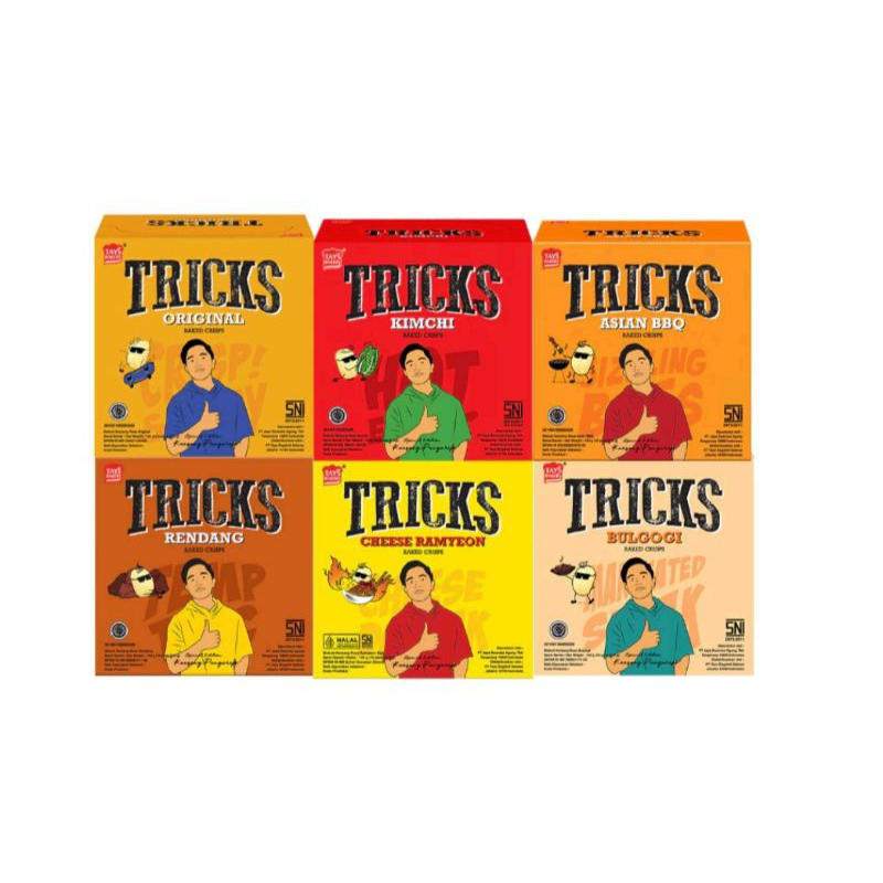 Snack kentang dengan varian rasa Asia yang khas membuat Tricks menjadi favorit semua kalangan. Dengan rasa Original, Asian BBQ, Kimchi serta Rendang pastinya bakal bikin kamu ketagihan.