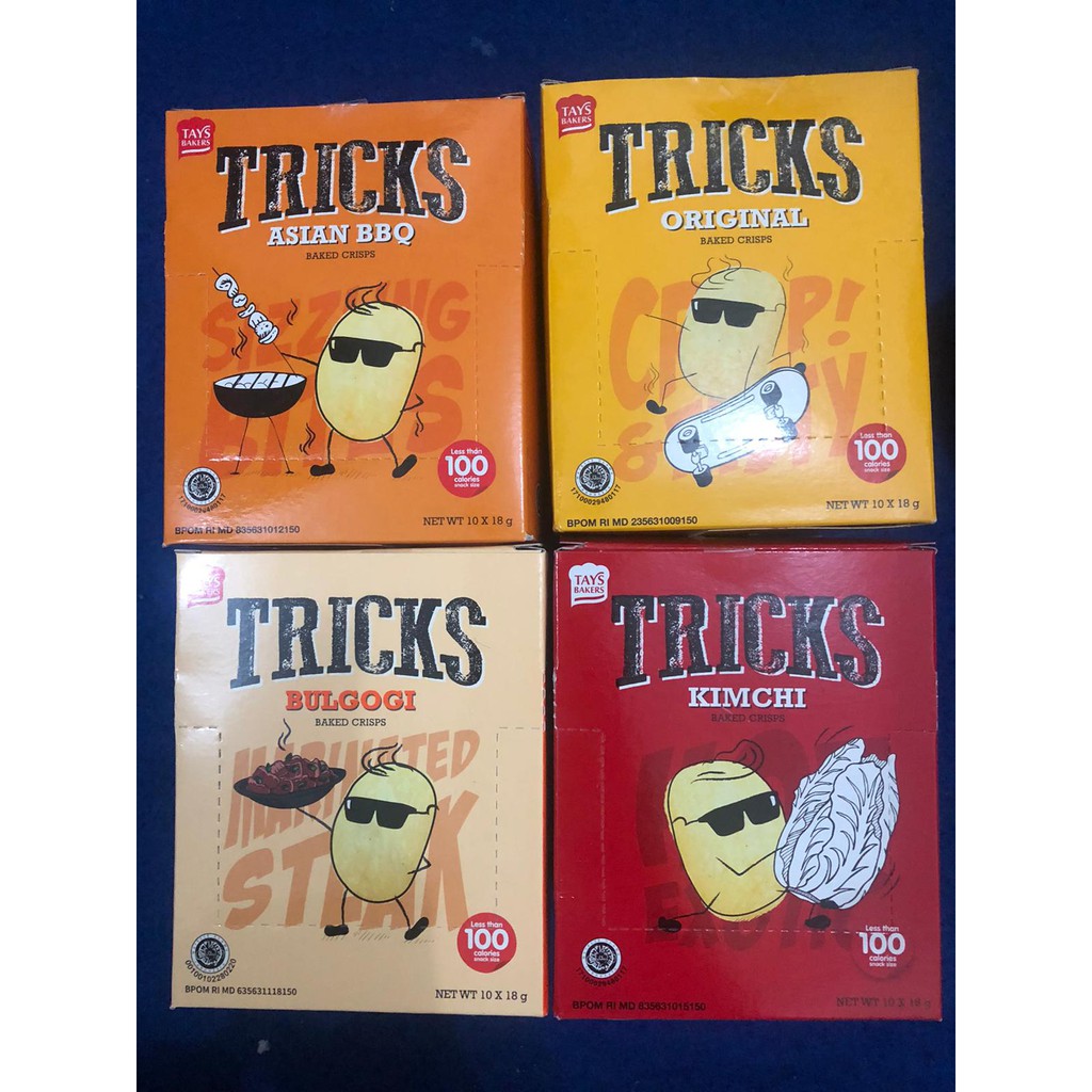 Biskuit Tricks tersedia dalam berbagai rasa (original, Asian BBQ, Bulgogi, Kimchi).