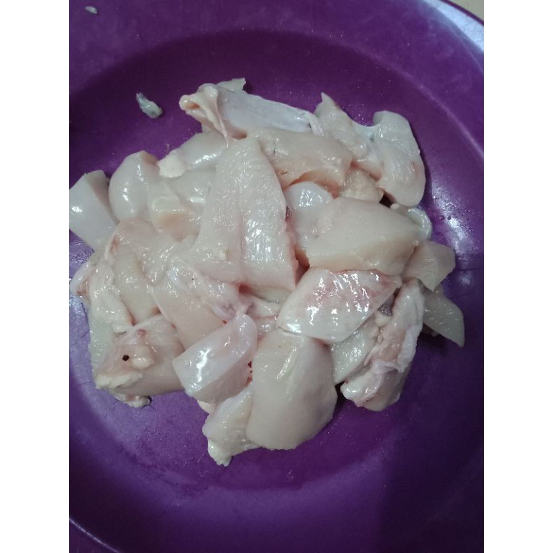 - Isinya adalah potongan dada, paha dan lemak.