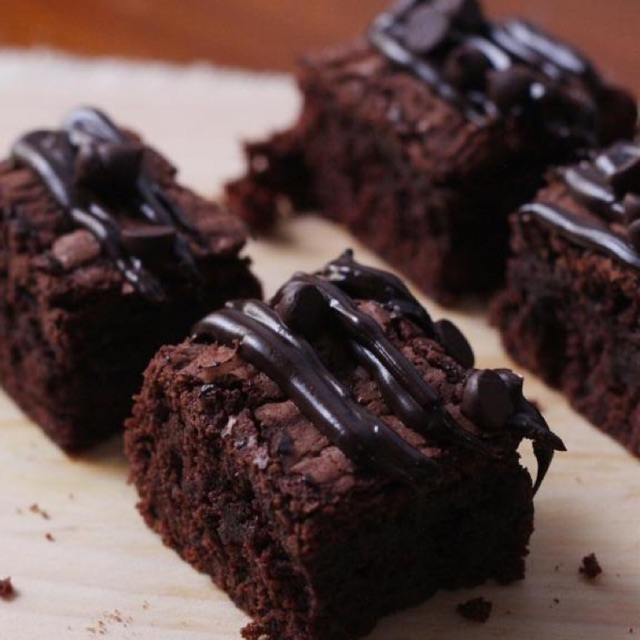 Chewy Brownies dengan toping Dark Choco dan Chocochip lumeeerr di mulut namun garibg di luar.