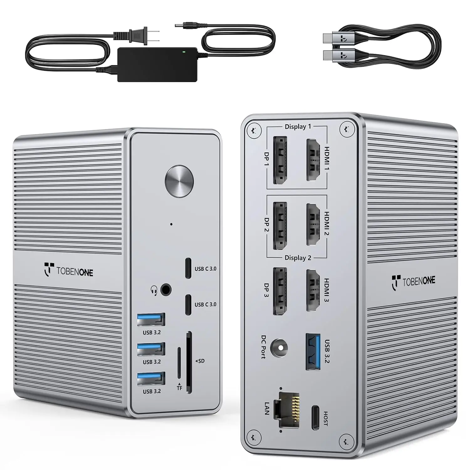 Triple Monitor Docking Station with 120W Adapter, 4K Display for MacBook & Windows, USB-C Hub