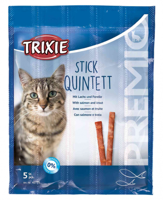 Палочки для кошек Trixiе лакомство Premio Stick Quintett (лосось-форель), 5х5 г