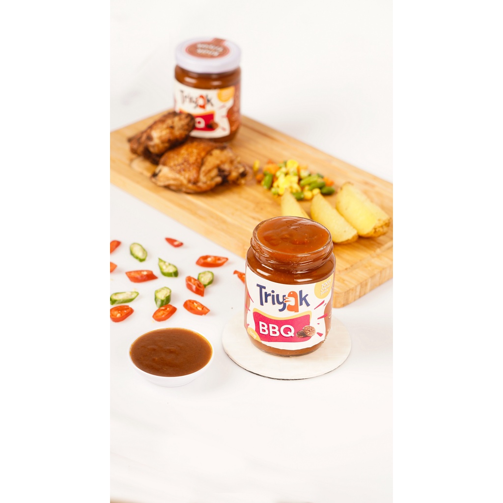 Saos Triyak BBQ dibuat dari bahan rempah-rempah pilihan dan juga dengan citra rasa kekinian loo.Sangat cocok disajikan untuk #sobattriyak sebagai pelengkap aneka makanan maupun camilan.