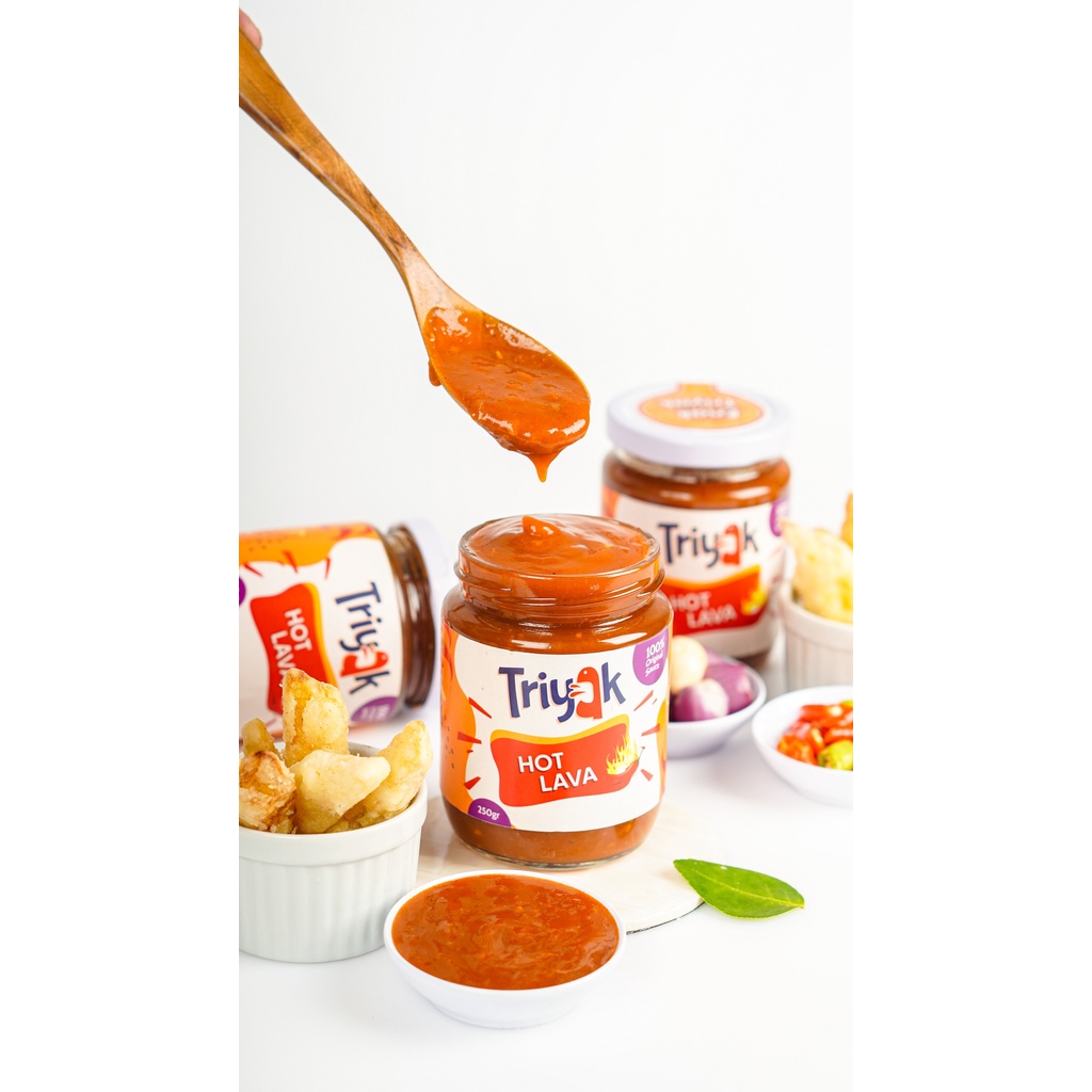 Saos triyak Hot lava dibuat dari bahan rempah-rempah pilihan dan juga dengan citra rasa kekinian loo.Sangat cocok disajikan untuk #sobattriyak sebagai pelengkap aneka makanan maupun camilan sobat.