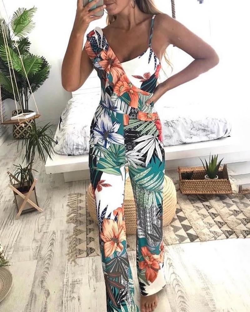 Tropical Print Irregular Ruffles Jumpsuit