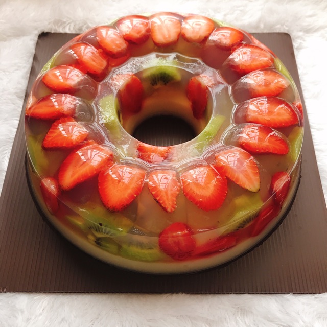 Pudding dengan isi buah”an dan lapis pudding susu