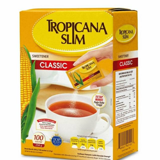 Pemanis alami sorbitol dan glikosakarida steviol, perisa alami, pemanis buatan 13.5mg/saji, bubuk jagung.