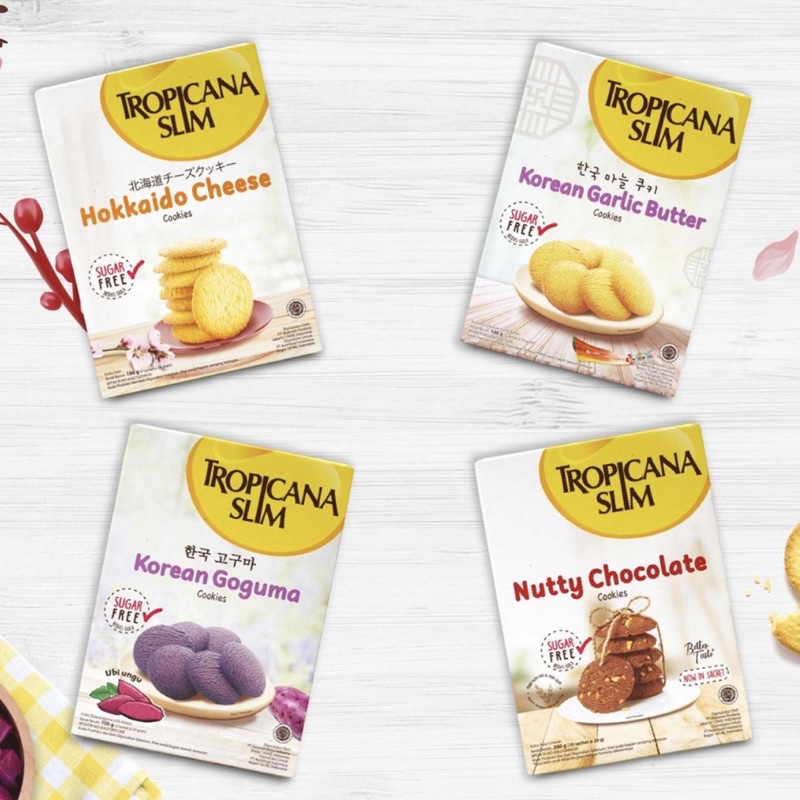 Nikmati Tropicana Slim Cookies, kukis bebas gula dengan rasa yang nikmat. Tropicana Slim Cookies juga diformulasikan bebas gula dan hanya 100 kalori per sachet sehingga aman bagi diabetesi dan cocok untuk diet.