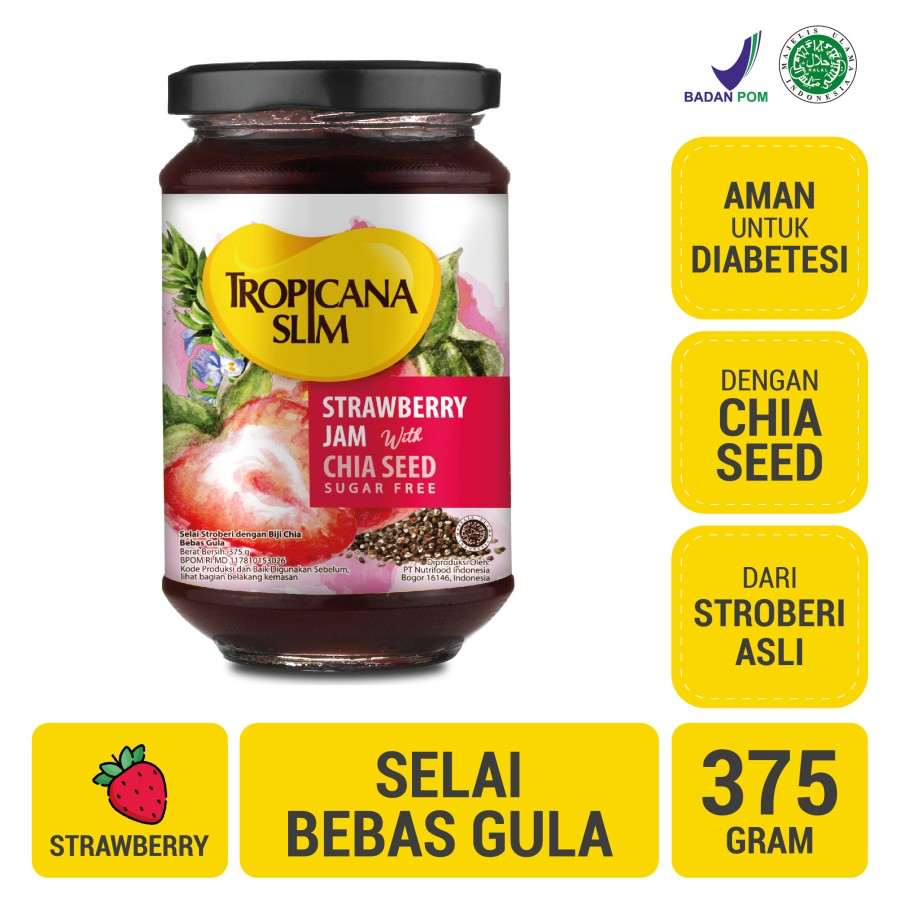 Tropicana Slim Strawberry Jam merupakan pilihan selai yang lezat namun lebih sehat, karena bebas gula dan rendah kalori dari 100% strawberry asli. Nikmatnya bersantap roti akan makin lengkap dengan olesan Selai Strawberry bebas gula yang terbuat dari 100% strawberry asli. So natural, so delicious.