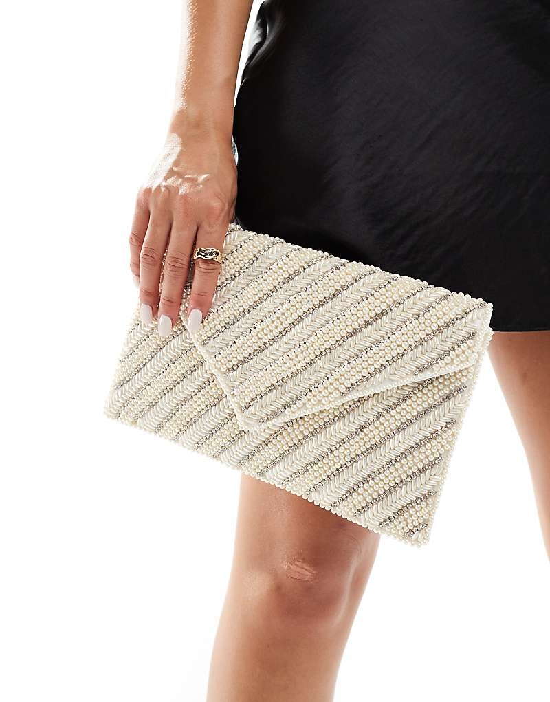 True Decadence – кремово-пудровый клатч на цепочке из бисера