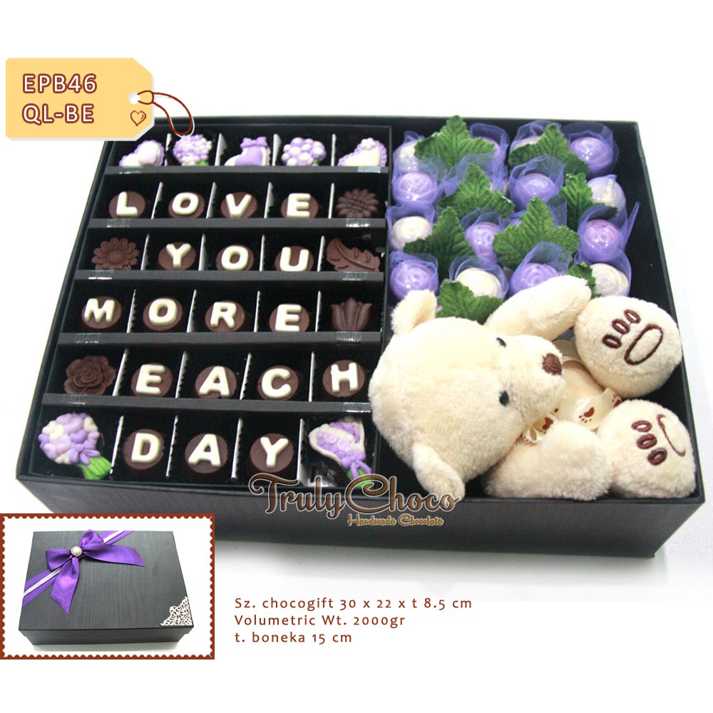 -isi cokelat praline 46 pcs dan boneka teddy