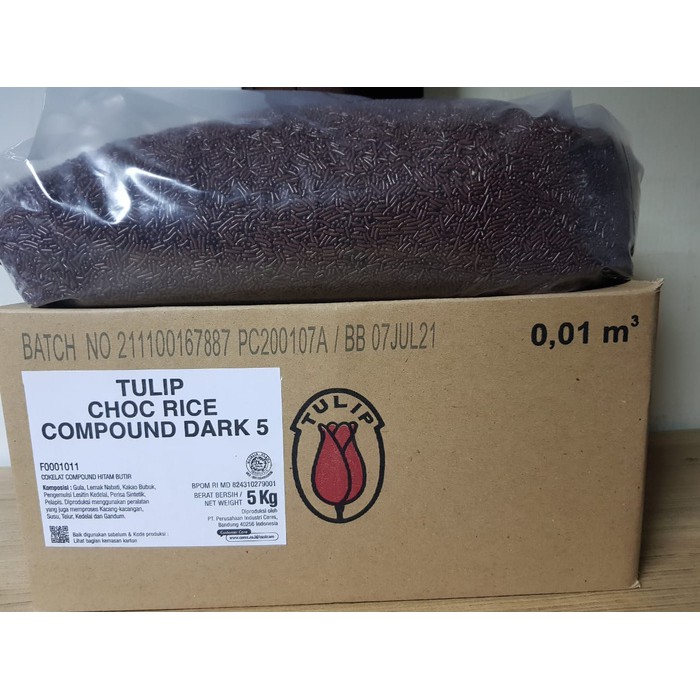 Tulip Dark Chocolate Rice (Meses) tersedia dalam kemasan repack berukuran 250Gr.