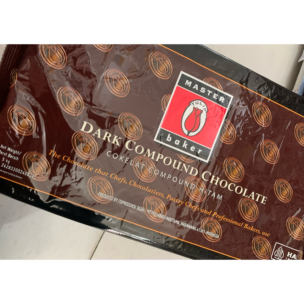Tulip Dark Compound 5kg adalah cokelat compound hitam (dark chocolate) berkualitas tinggi dalam kemasan 5kg, cocok untuk berbagai aplikasi seperti roti, pastry, dan pembuatan cokelat
