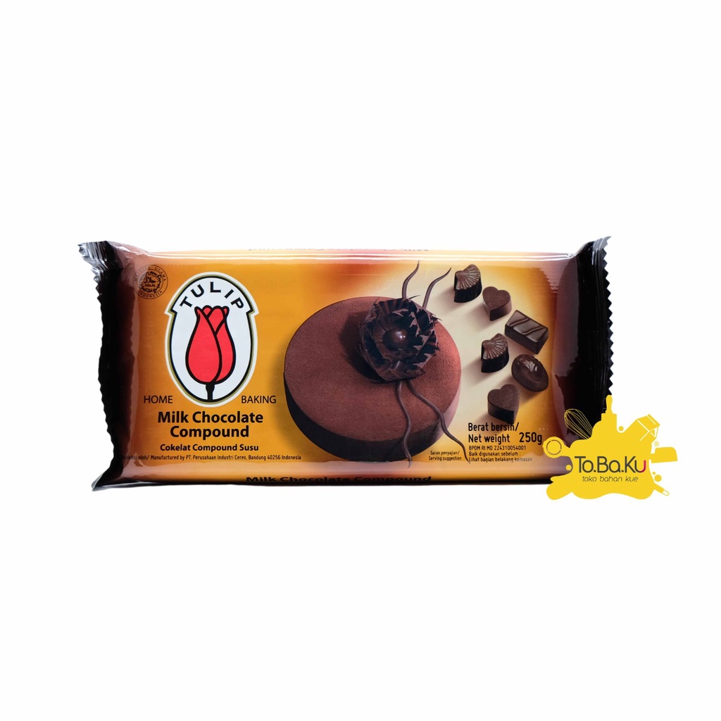 Tulip chocolate compound / cokelat compound tulip. Cokelat compound dapat dilelehkan untuk untuk digunakan sebagai bahan tambahan untuk pembuatan kue / roti / cookies / dan dessert lainnya.