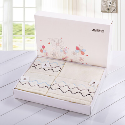 Tuqiang полотенце домашний текстиль хлопок вышивка простой квадрат полотенце полотенце полотенце три комплекта подарочной коробке бокс задумчивость бежевый
