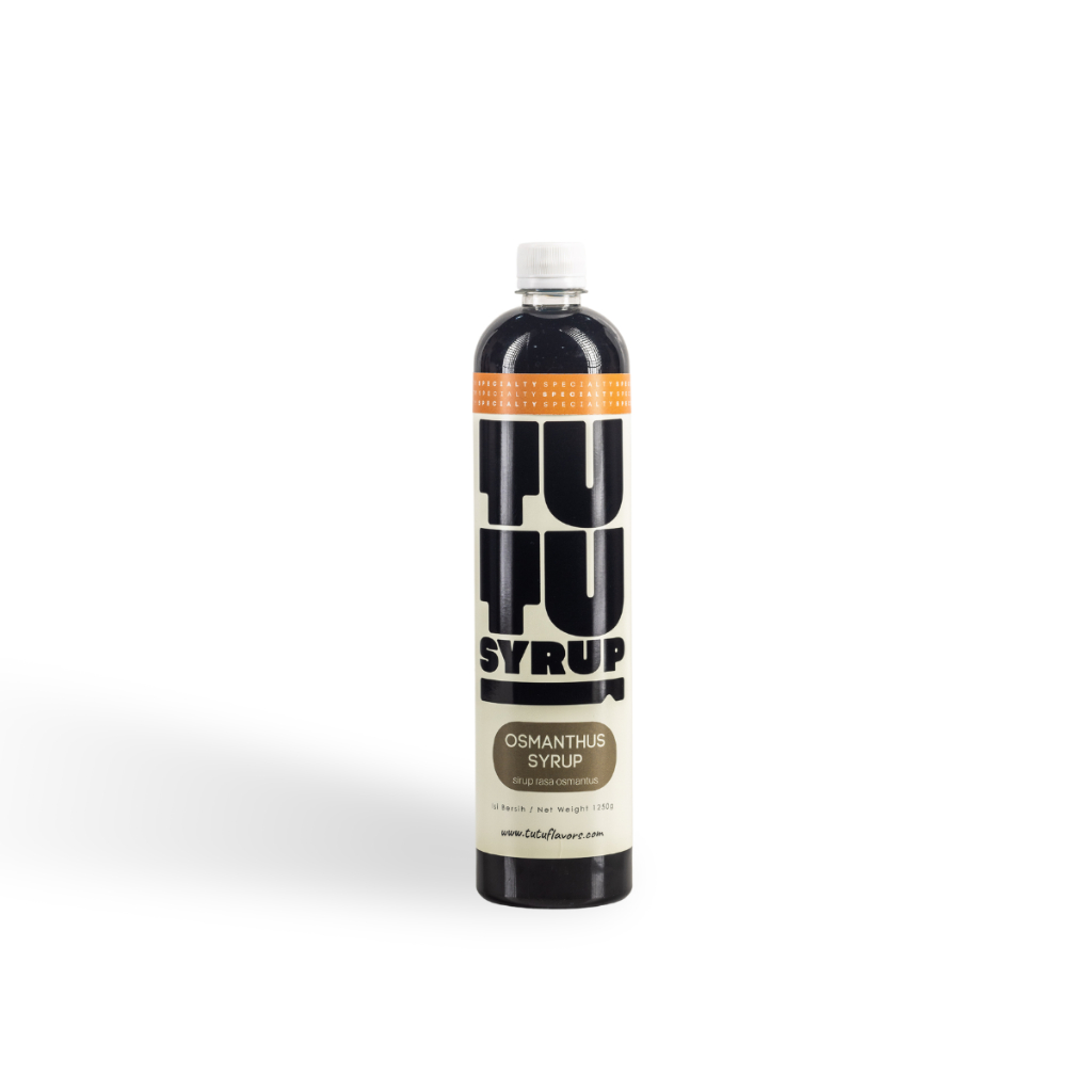 Sirup Tutu Osmanthus dengan karakter floral yang ringan dan wangi osmanthus yang elegan, cocok sebagai campuran minuman mixology yang segar dengan bahan teh, soda, jus buah, atau spirit.