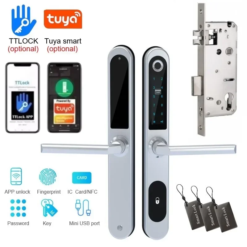 Tuya APP Unlock Smart Door Lock TT lock Card Fingerprint Password Unlock Outdoor Waterproof Electronic Lock for Narrow Edge Door