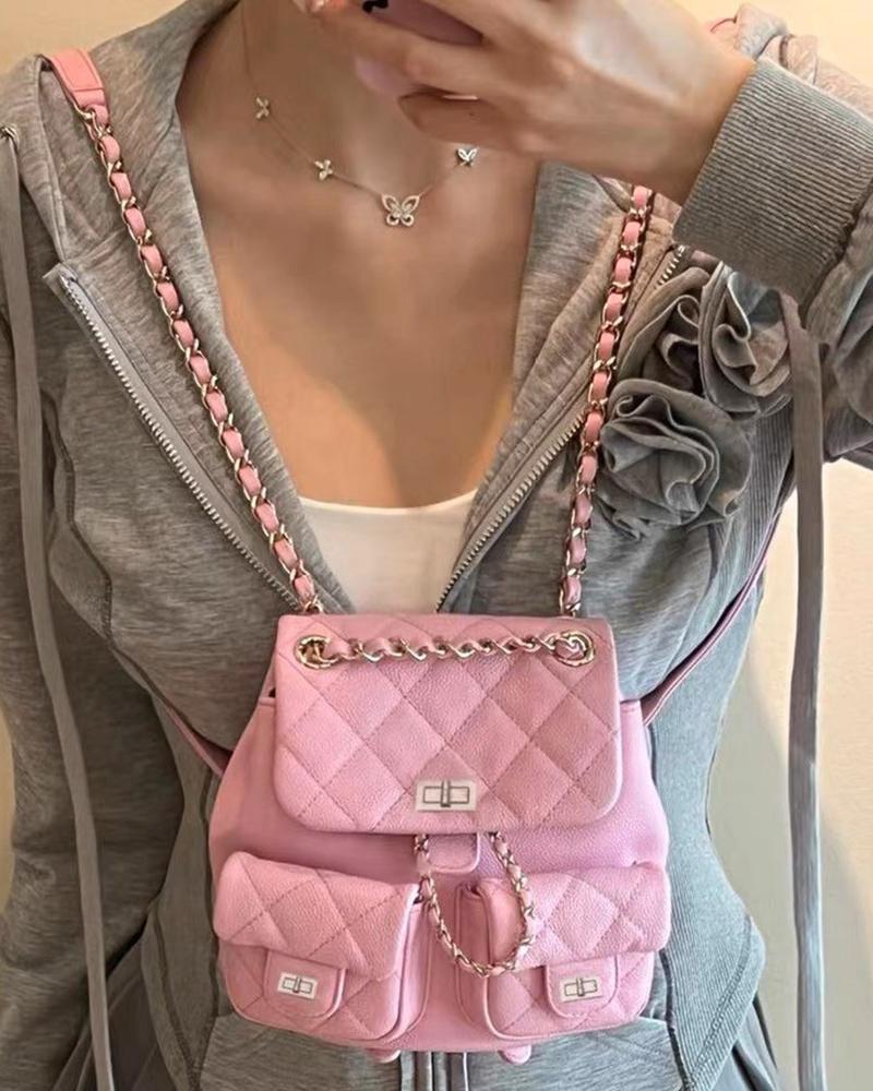 Twist Lock Pocket Design Flap Mini Backpack, Pink